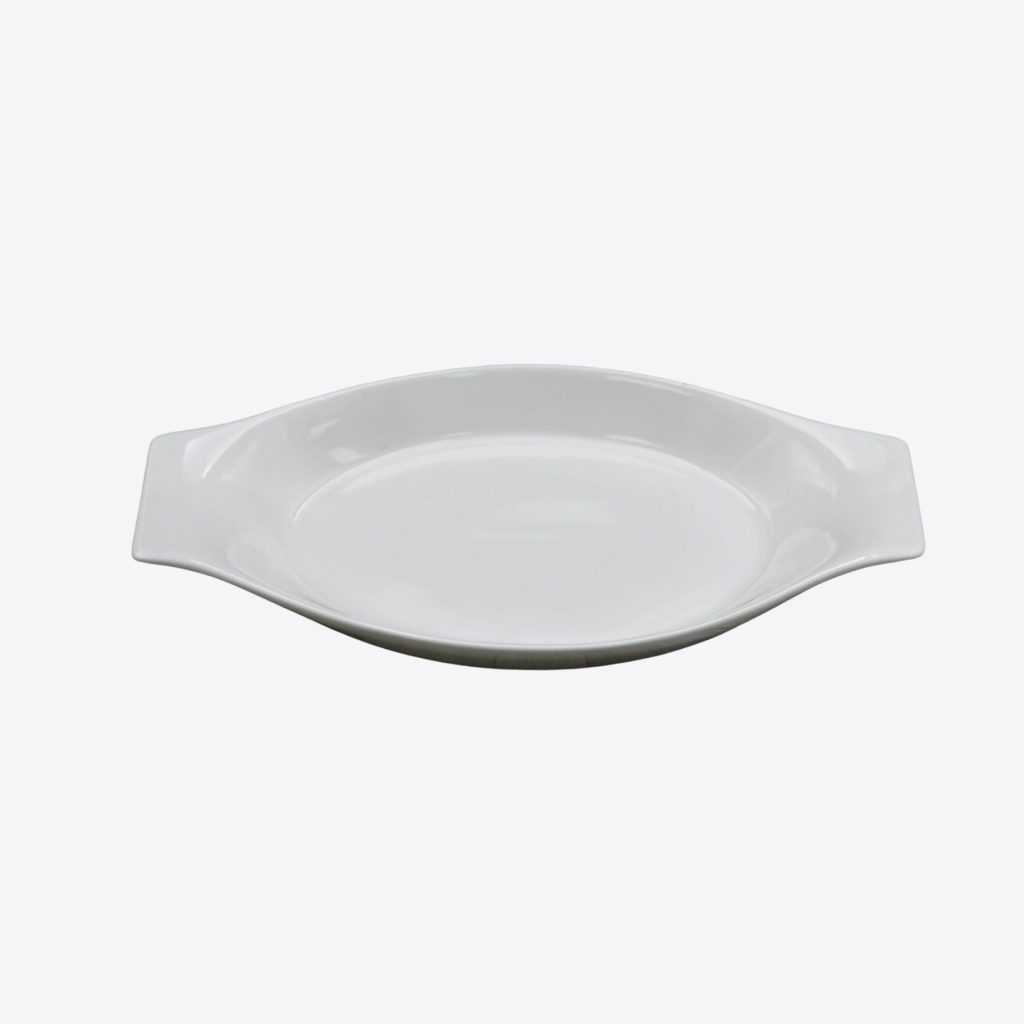 This baking dish has thick sides and bottom allowing for excellent heat retention. Prepared dishes can be served straight from the oven or microwave to your table and the neutral design will not harm the harmony of the setting.