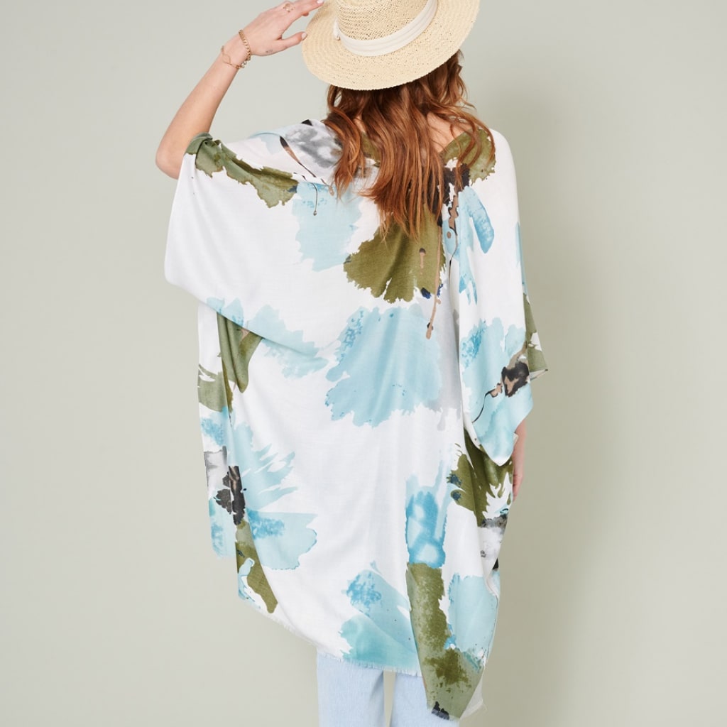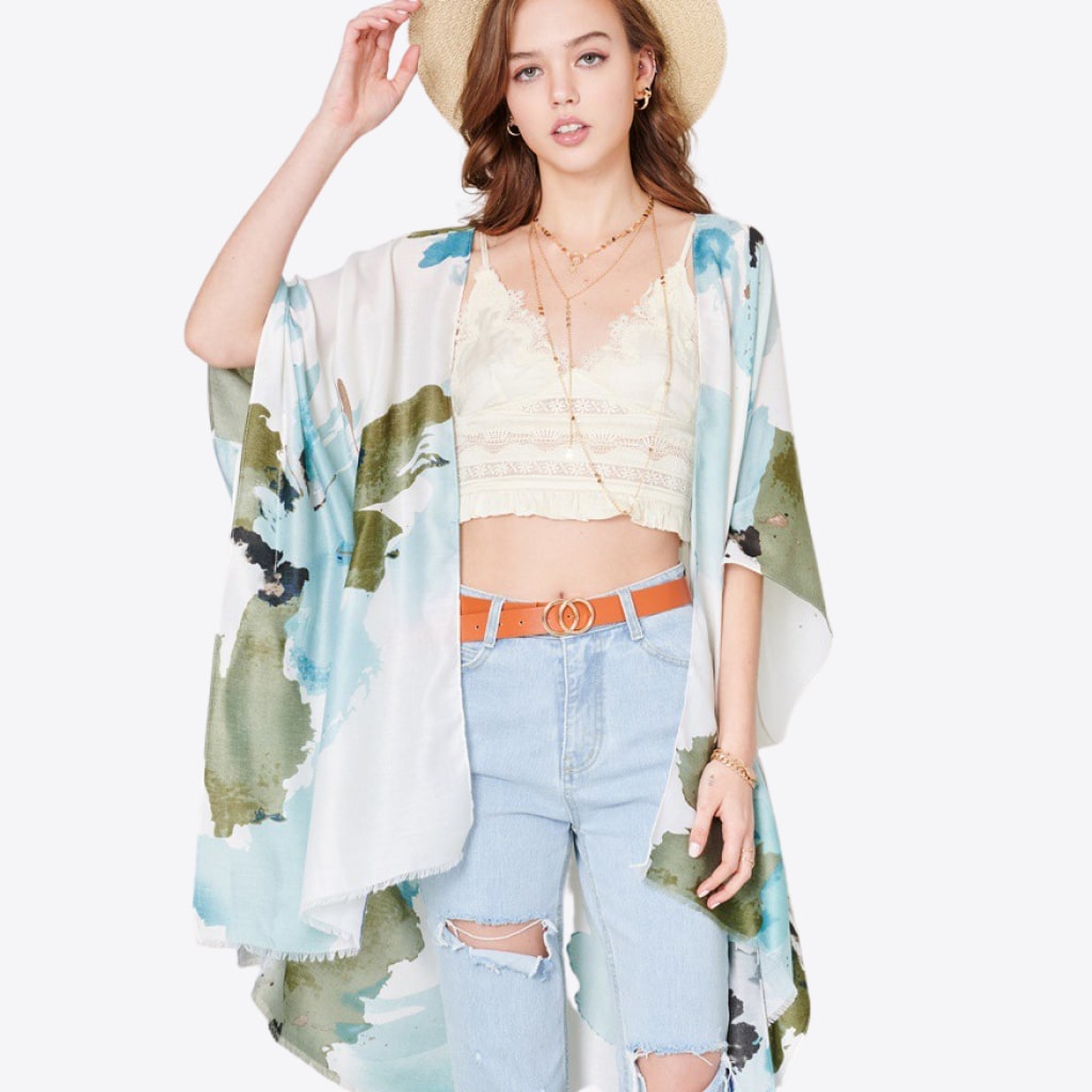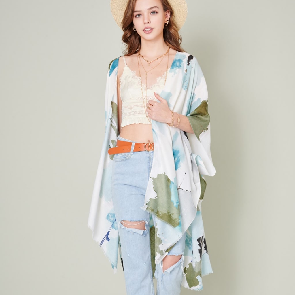 The Brush Stroke Print Kimono transforms a simple outfit from drab to fab! It is a perfect statement piece for your summer wardrobe.