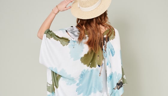 This kimono is perfect to take over a tight dress, a skirt, or a pair of jeans. A great option for a night in the town! Team with white jeans for a fresh, zesty look. Would go well dressed up with booties and wedges, or down with a sleek pair of sneakers. The coverup also works great over a bikini for a beach-to-bar combo.