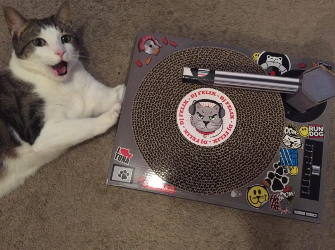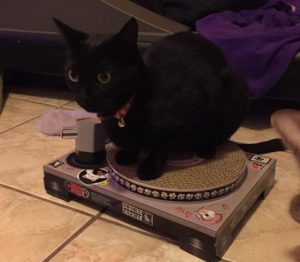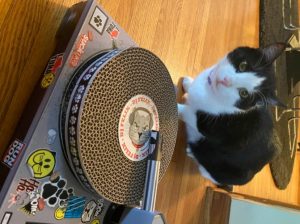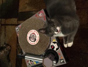 First off, I do not agree with the process or procedure of declawing cats. But I do also understand that there are emergency situations that can arise. Three of my cats or front declawed but they still have their back clause. They are all adoptions. The newest cat is about two years old and he has all his calls and I am not willing to remove them so we train him to use his scratching post and his scratching pad’s. He is extremely intelligent and has not scratched on anything that he is not allowed to. as soon as I laid this down he was already on it and scratching and loving it. He will scratch on it and then look at us waiting for us to tell him that he did a good job. And that is all it takes for him to be happy and is very well trained.