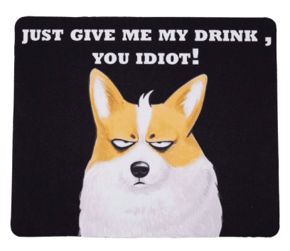 The mouse pad is the same as in the picture, what you see is what you get. I like the fabric or material of which is made, it is nice to touch and to move the mouse. The image is so hilarious – even though the corgi is grumpy and tired-looking, it makes you laugh and, like, begs you to pet and solace (? haha) this cute dog. I shoed this pad to all my friends and colleagues, they are all jealous now yeaaah