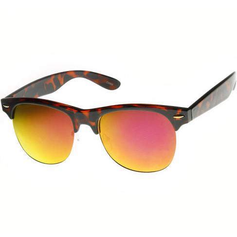 Classic meets modern with these semi-rimless horned rim half frames that feature an eye-catching color mirrored lens.