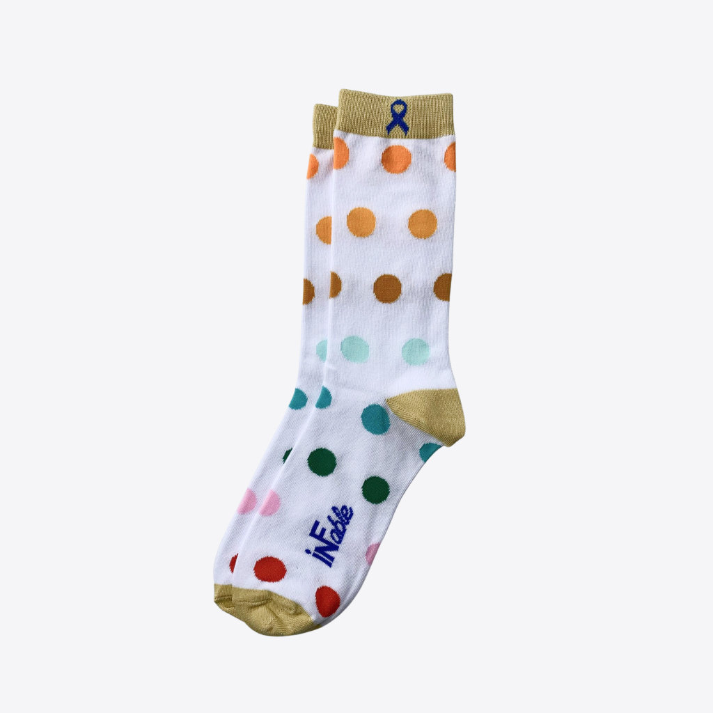On any given day, 437,000 American children are under foster care. It’s a massive responsibility for all of us as a society that these children are nourished and raised with kindness. Carelessness and abuse are all too common for children in foster care. It’s time we took responsibility for our children and designed a better foster care system. These colorful polka dot ‘Foster Care’ socks are intended to raise awareness and bring attention to this issue.