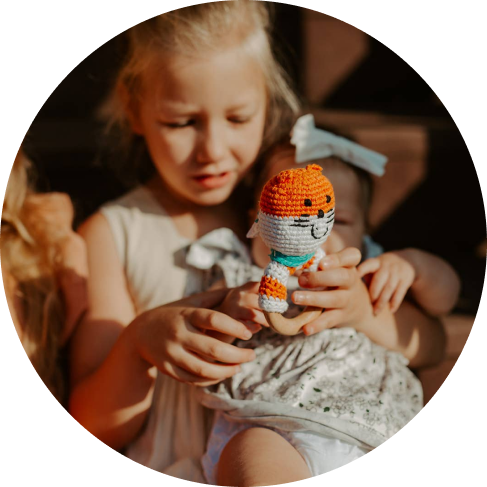 This toy is absolutely safe for your kids: it’s made of a beechwood ring, and hand crocheted with 100% cotton yarn and a polyfill.
