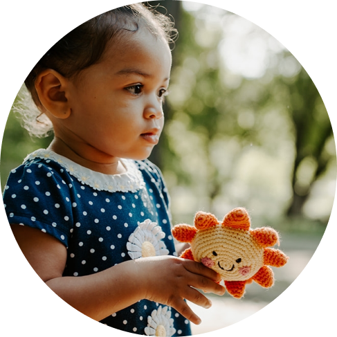 Once upon a time, a young woman from the UK fell in love with a young man from Bangladesh. Eventually they moved to Bangladesh and had a baby. As the new mother cuddled her tiny boy, she couldn’t help but notice all of the young women streaming into the garment factories every morning. She was deeply saddened when she discovered that many of these woman had babies back home in their villages, left for months at a time with grandparents while the mom worked in the city. Lack of rural employment for women was separating families and putting the mothers in harmful situations and the babies without their mothers. So this new mom did what she could. She gathered a few women around her and taught them how to knit and crochet little dollies that could be sold in the Western markets. Samantha Morshed dreamed that this would grow and become an alternative source of income for women throughout Bangladesh. 15 years later, her dream is becoming a reality. More than 13,000 women are now employed making Pebble toys in their home village. They walk to work, taking their babies with them. There they sit together, yarn spilling onto their laps as they knit community and love together in each heirloom Pebble toy. Pebble was born out of a love for babies and their mothers.