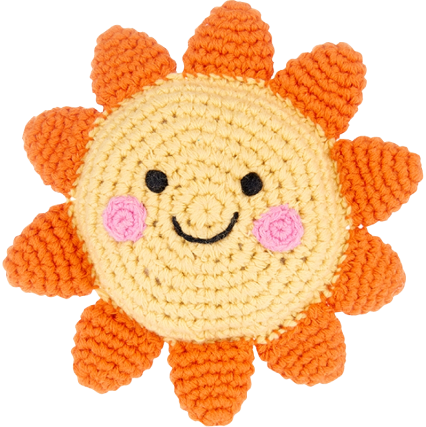 Lovingly handmade with soft cotton yarn, it is the perfect heirloom toy for your little one to cuddle. This wonderful friendly sun rattle toy will be the perfect friend for your little one.