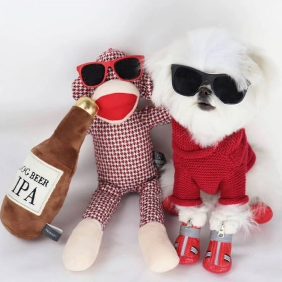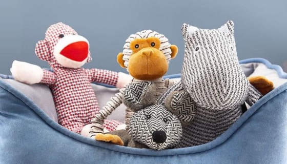 I bought this little monkey toy for my pup pokey, and she loves it. She carries it with her everywhere! It’s durable too – she plays tug with it with me, and her best dog friend, and so far, it’s alive!