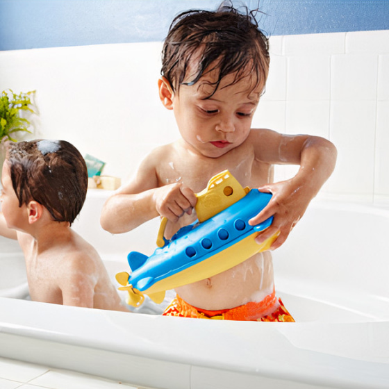 The Green Toys Submarine invites your child on their own undersea adventures in the bath! It will be your best friend, too, as it makes hair washing easier and less stressful for all involved. Simply fill it up under the running water or submerge in the tub: either way, this eco-friendly bath toy will be ready to pour water from its handy spout or mouth at the fore – like a jug, but with much more precision.