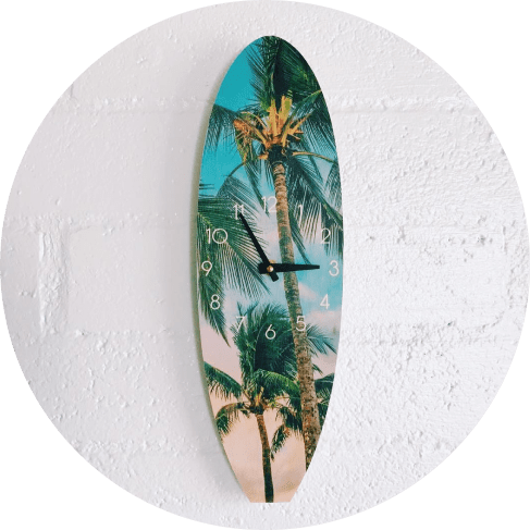 A portion of proceeds from each Hawaiian Palms wall clock sold is donated towards protecting and preserving the ocean.