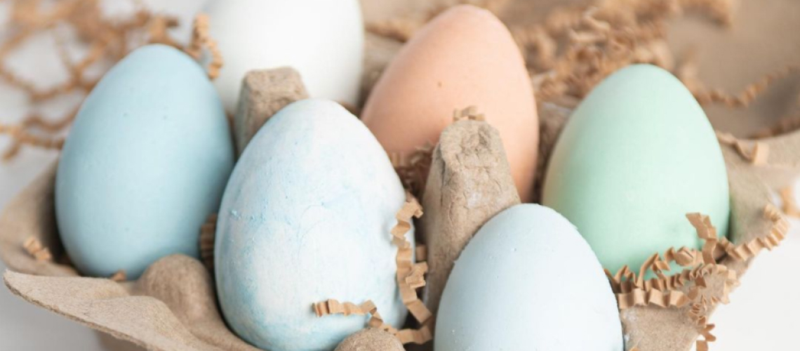 Safe, non-toxic, washable chalk eggs are made from all-natural materials: chalks and natural pigments packed in cardboard carton.