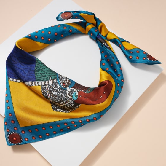 Treat yourself or your loved one with our fabulous hand-printed silk scarf, featuring an elegant, classy horse print. Its handy size means it can be worn in a variety of ways – perfect for the summer months to add some glamour to the day! It’s perfect for everyday wear, work wear, office look as well as for special party occasions.