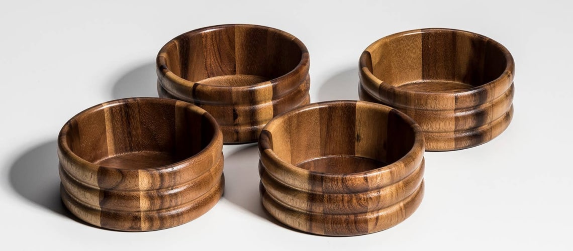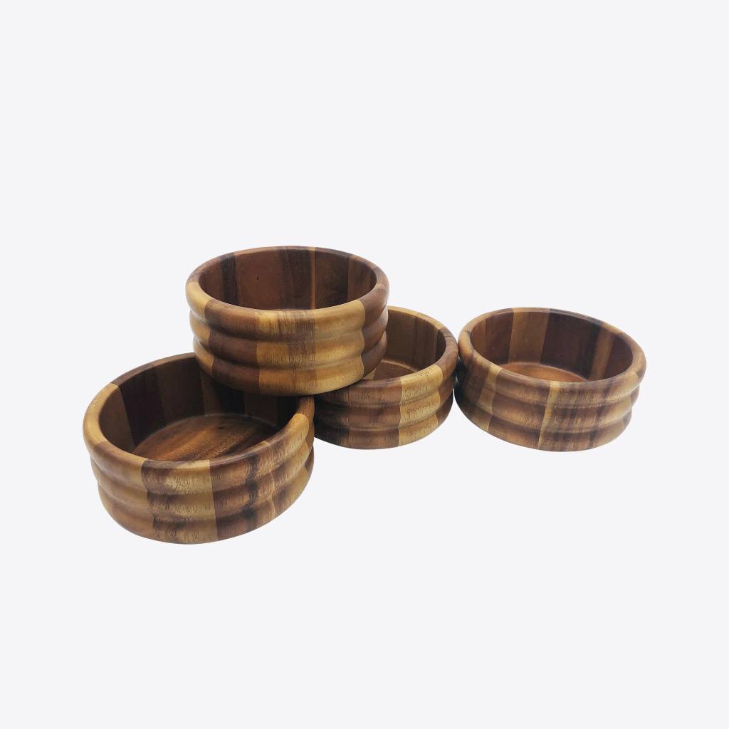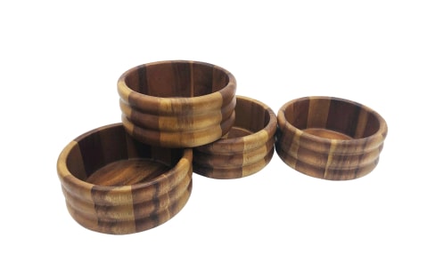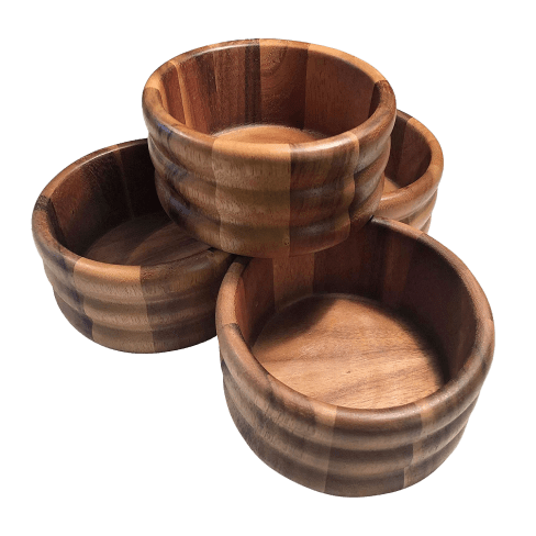 This gorgeous acacia wood set of 4 individual salad bowls are designed to beautifully coordinate with larger bowls and servers. They make a perfect addition to your table.