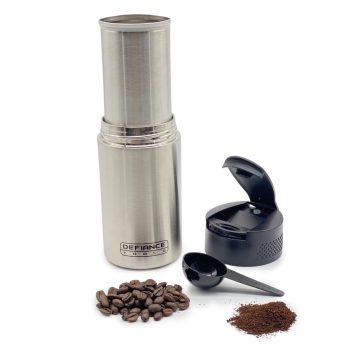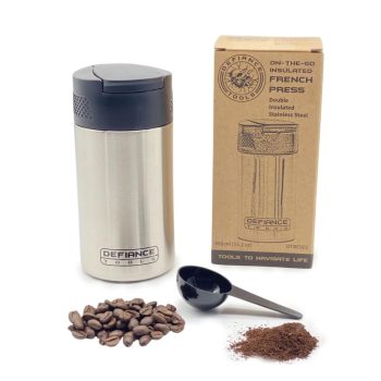 A French press makes a great concentrated cup of coffee, but they are usually made of glass and are not an easy device to travel with. We love our Insulated French Press To-Go and are excited that we can make a cup of French press coffee anywhere in the world! Not only does it press the coffee, it serves as a double insulated cup to drink from and take with you!