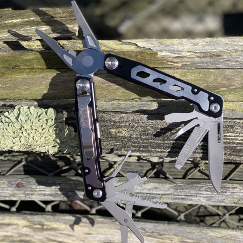 This easy-to-use tool comes with a nylon holster/pouch for convenient carrying. Also, you can use the built-in belt clip to carry it anywhere. It’s built from super tough stainless steel that can handle work in any environment, making it a must-have multi-tool.