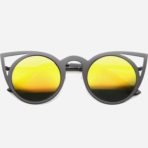 Laser Cut Round Metal Mirrored Sunglasses