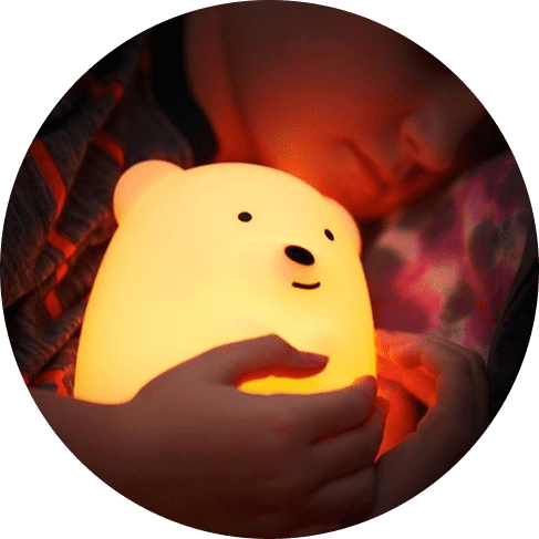 Our soft silicone night light for kids casts a gentle glow designed to calm children of all ages whether used as a cute lamp or cuddly companion.