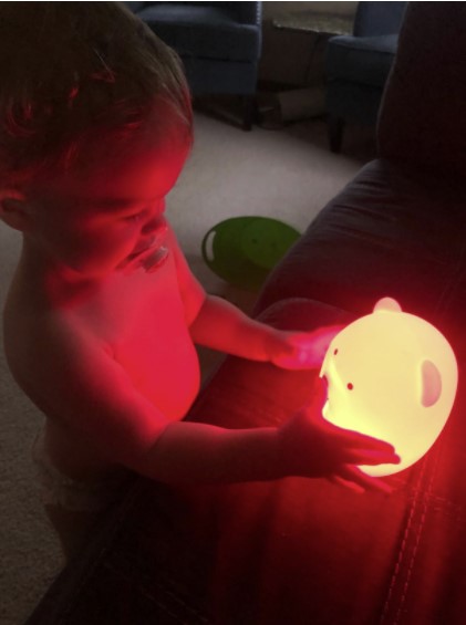 Once we moved my son to a toddler bed, we needed a light for him to be able to read with during his “quiet time” before bed since his isn’t bright enough. I did a lot of research on different lights. We didn’t need a light to be on all night- just for reading before bed and in the am before if he wakes before we come to get him. This really is an excellent light for toddlers- it’s cute, it’s durable, it is bright enough to read with and it’s easy to turn on and off. The remote, for us isn’t all that great. I bought it with the hopes that I could turn off the light once my son fell asleep without opening the door, but you have to be pretty close (I would say within 5 ft with nothing interfering) for it to register. There is a timer function, which I was so excited for, but if your child turns the light on and off again, the timer function resets and won’t work. So, with that being said, I have two things that I would have LOVED to have seen in this light. 1- a Bluetooth or WiFi function to be able to remotely turn off the light without entering my child’s room or 2. A toddler lock on the on/off switch.