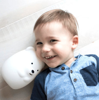 I was very skeptical about this, but I was willing to try because I wanted my son to sleep through the night and in his own bed and I had tried everything! My son loved the bear and liked having the light right next to him and easily accessible when he does wake up. My son has generally been sleeping in his own bed and when he does wake up, he goes back to sleep easily. I’m happy with it so far and I really think it does help to transition kids to their own bed. Very happy!
