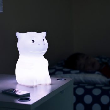 The light features 9 glowing colors that can be changed with a single touch or with the remote, Children will be encouraged to learn their colors as they play with this kid’s lamp.
