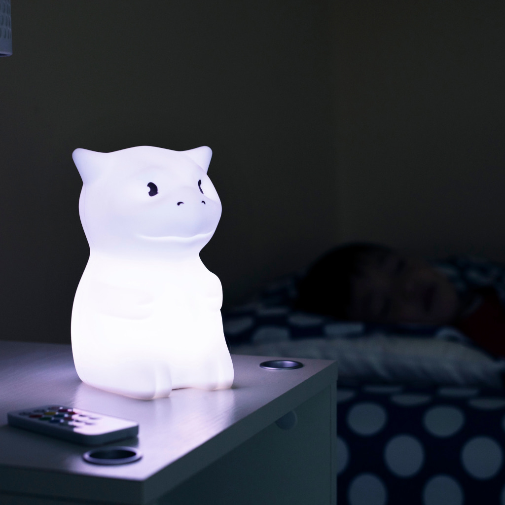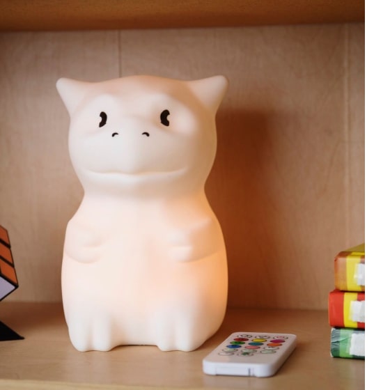 The soft silicone night light for kids casts a gentle glow designed to calm children of all ages whether used as a cute lamp or cuddly companion.