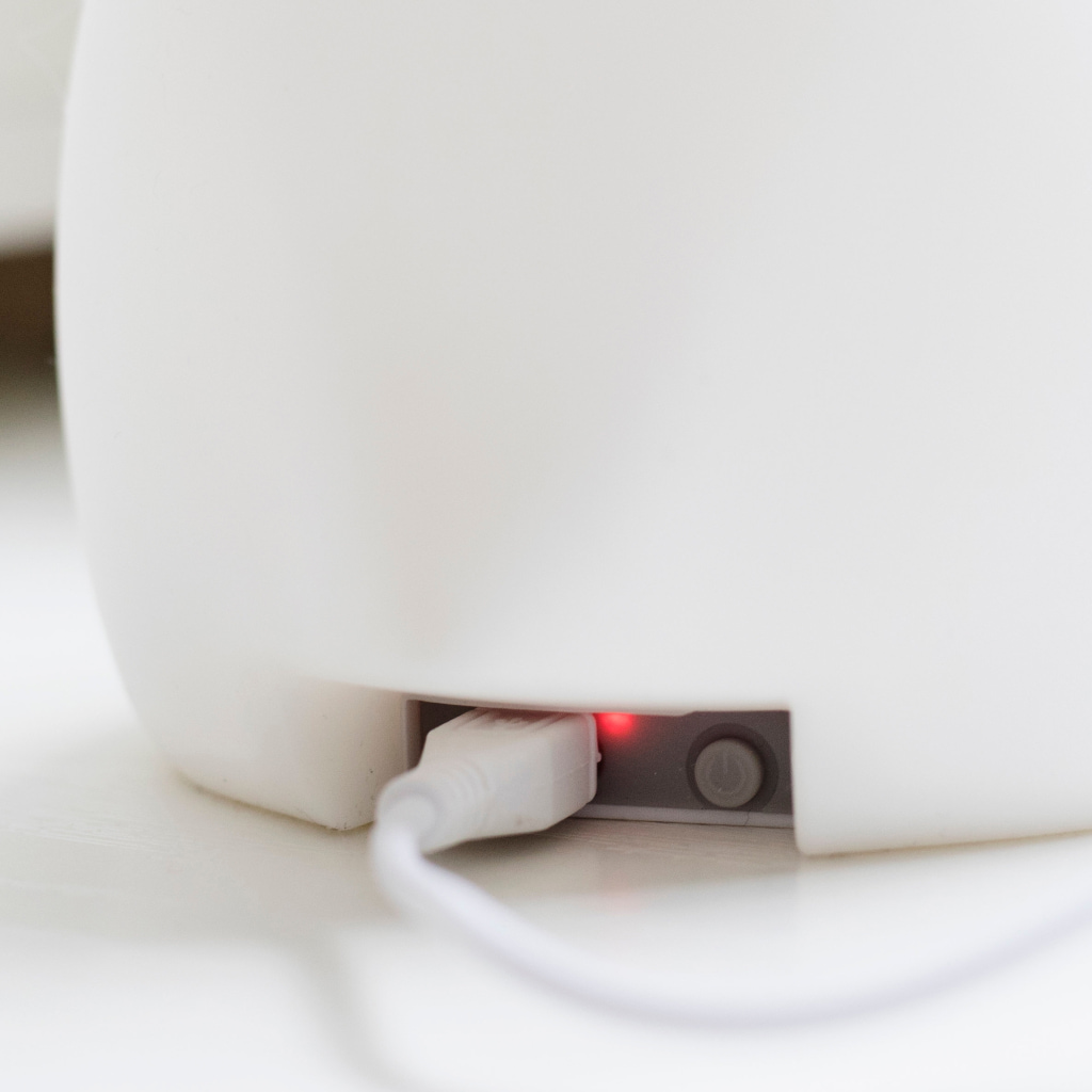 The LumiPets night light is designed to glow up to 12 hours on a single charge or can be used continuously while plugged in.