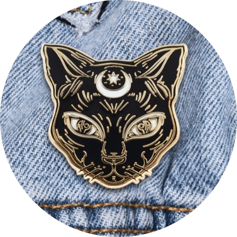 This pin looks great on leather or denim jackets, backpacks, hats, or your pinboard. This is the perfect pin for the cat lovers & witches of the world.