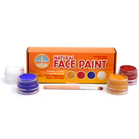 Explore face painting fun for dress-ups, festivals, theater, circus, or parties – or that child that would love to play makeup without all the nasties. Made with natural ingredients like organic shea butter and castor seed oil, these paints are durable AND wash off easily with water and nothing more.