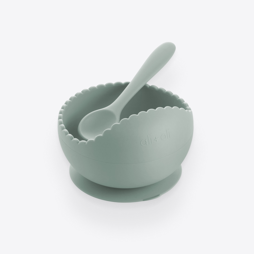 This baby feeding set is an example of tableware that’s suited for small hands and tiny appetites. Made from baby-friendly and durable materials, it is designed to be easy to care for. This set includes a BPA-free silicone bowl & spoon in a soft mint color your family will love. Perfect for all first food approaches, including baby-led weaning.