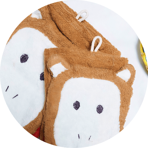 Measuring 4 x 6 inches, our Organic Cotton Monkey Washcloth fits kid’s hands perfectly! The recommended age is 12 months and up. This washcloth is ideal for teaching your kid independence so they can learn to wash themselves.