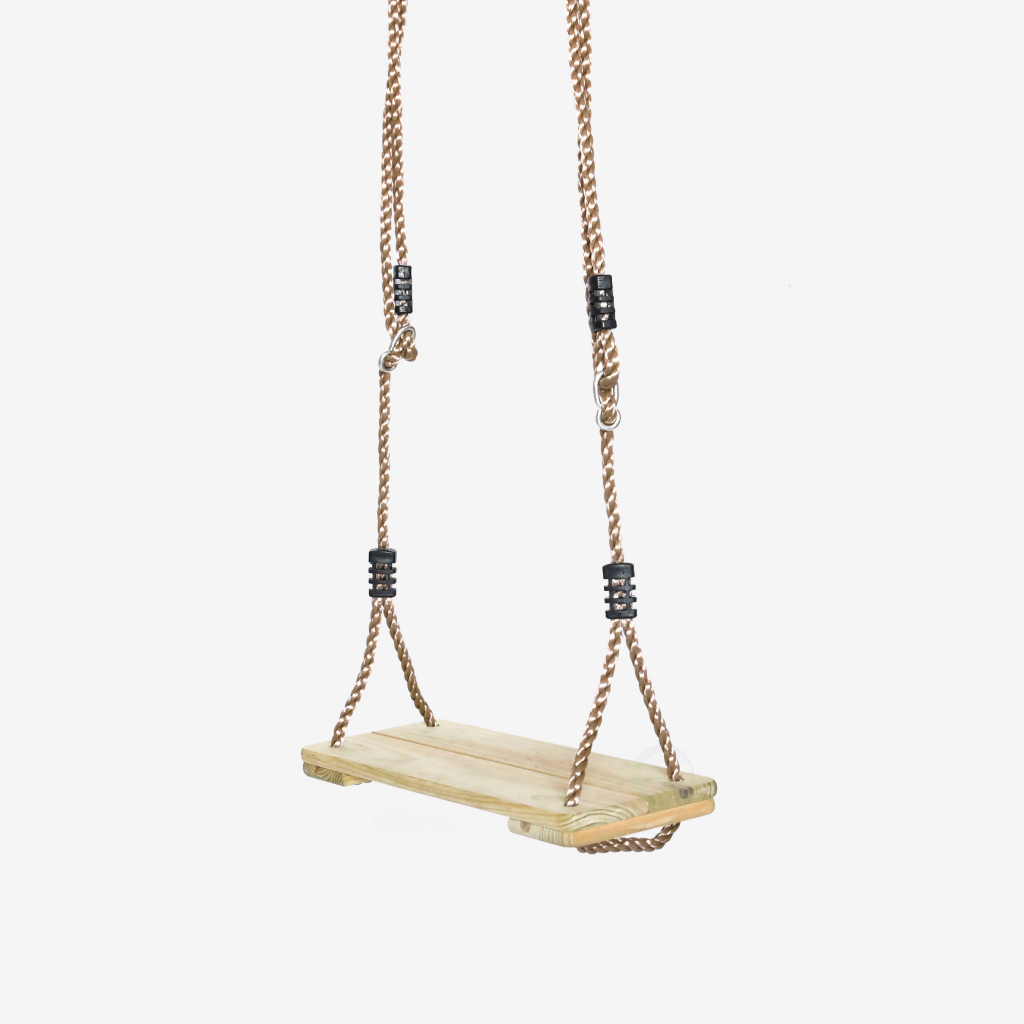 This natural wood swing seat is perfect for use from ages 3 and up and adds a touch of traditional fun to your yard.