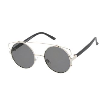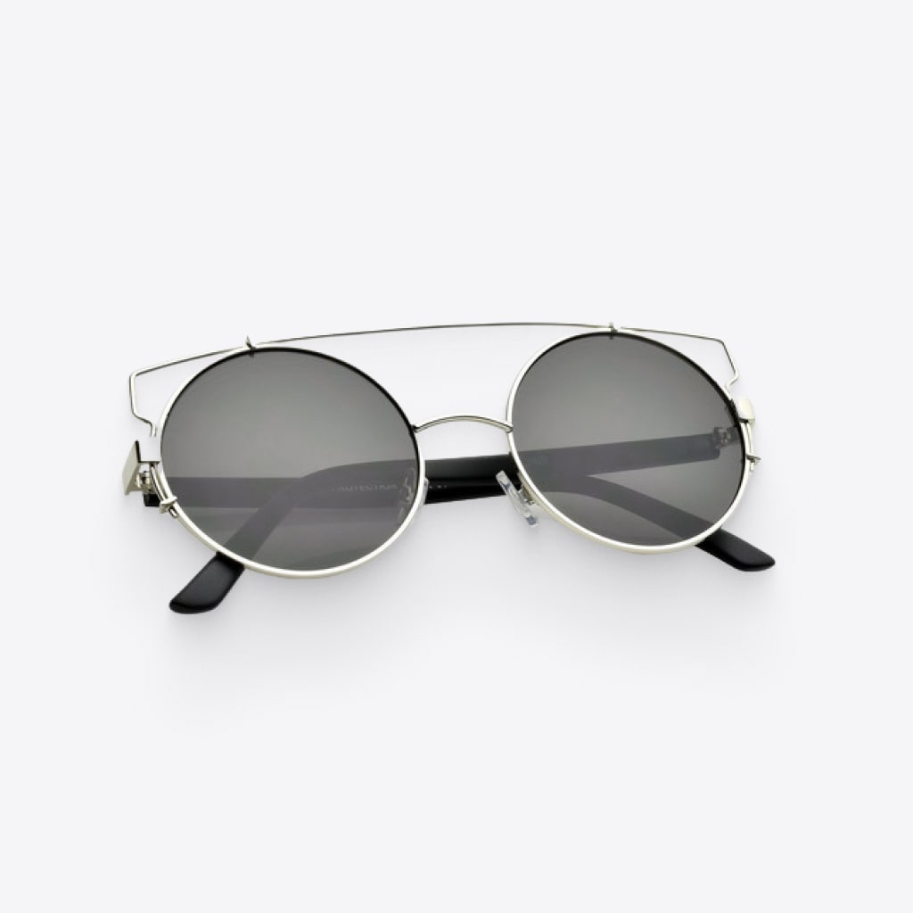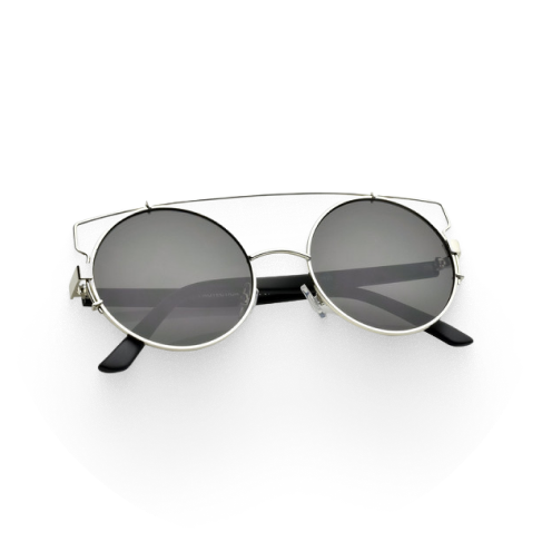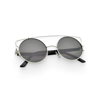 An open metal frame with a sleek crossbar adds the modern appeal, while rounded flat lenses create an eye-catching effect.