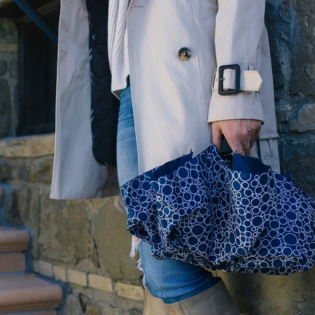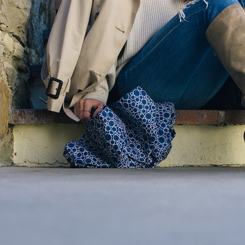 Don’t sacrifice style and personality in your outfit when it’s raining! Opt for a stylish umbrella that makes you smile. Trying to stay dry never looked so good!