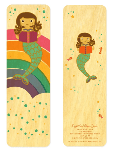 This adorable bookmark is hand-crafted from sustainably harvested birch wood and is 100 percent biodegradable and recyclable with paper goods. One side features a beautiful design to mark your spot, and a cute related pattern is placed on the other side.