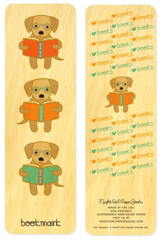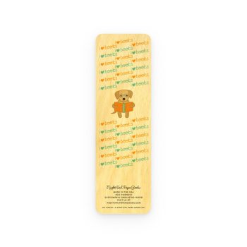 This golden retriever-inspired bookmark is hand-crafted from sustainably harvested birch wood and is 100 percent biodegradable and recyclable with paper goods. One side displays a beautiful design to mark your spot and the other side displays a corresponding design.