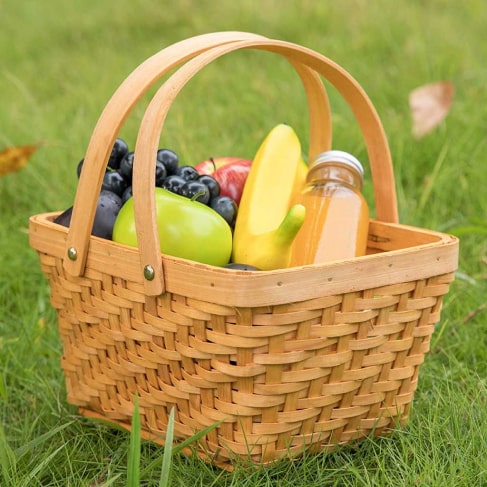 This rectangular chip picnic basket has the following approximate dimensions: 10.2″ x 7.7″ x 5.5″.