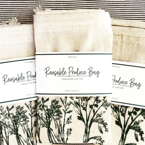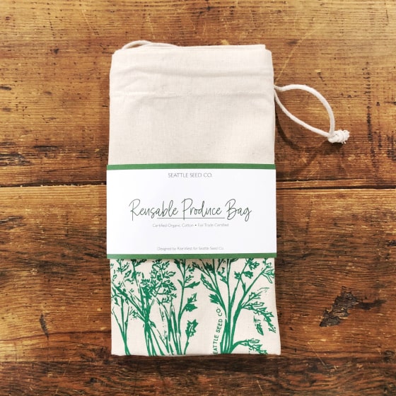 Our Reusable Produce Bag is proudly designed and printed in California by Rise West, exclusively for the Seattle Seed Company brand.