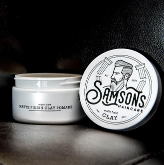 Add texture, volume, and swagger with the Samson’s Matte Finish Clay. Our water-based product helps add a medium hold with zero shine, for spiked and tousled styles alike. Get the look you want every time, anytime with this easily-workable (and reworkable) styling clay made for any mood or feel — for a clean, lasting look.