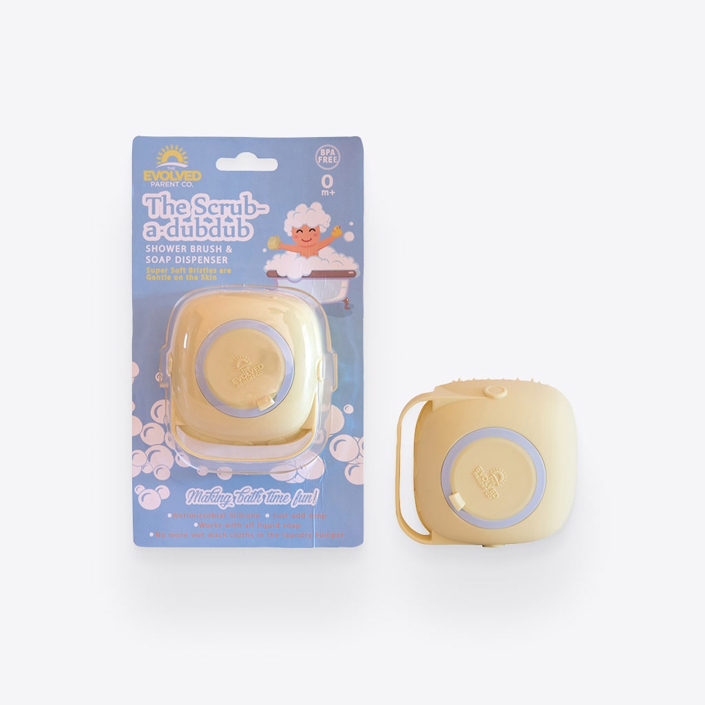 Newborns to toddlers, the Scrub-a-dubdub with super soft bristles makes bath time a breeze! It’s a must-have for all parents! Simply fill the Scrub-a-dubdub with any liquid soap and squeeze your way to a squeaky-clean baby. Ditch those wet washcloths and fumbling with a slippery soap bottle for this simple one-step brush.