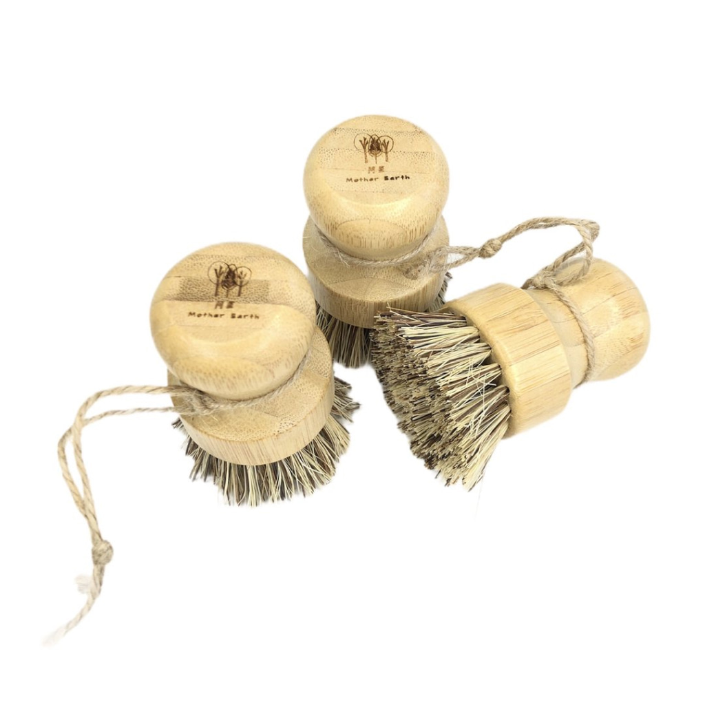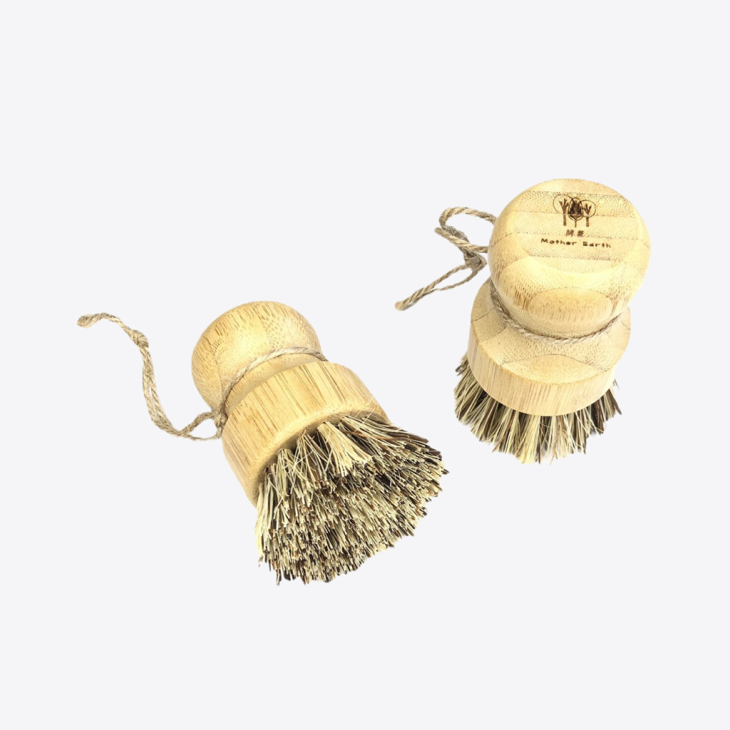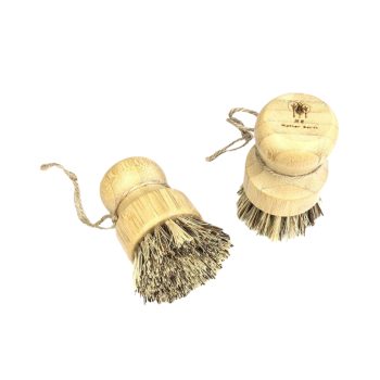 Features a wooden handle with stiff plant fiber bristles – mixture of palm and sisal (agave plant). Comes with a twine loop for hanging. 100% biodegradable!