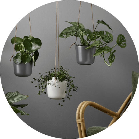 Wonderful hanging self-watering pots. Both have devil’s ivy and are very happily growing plus only have to water weekly!