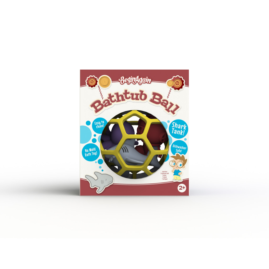 Fun, unique and imaginative, Shark Tank Bathtub Ball toy for toddlers by BeginAgain includes a spherical shark tank, master diver, octopus, and shark bath toy – what could be better for a bath and pool playtime?! BeginAgain Shark Tank Bathtub Ball toy characters blow bubbles when submerged underwater and lend to hours of storytelling and imagination.