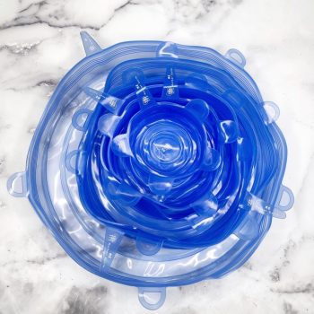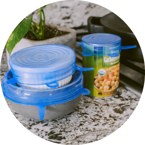 The silicone stretch cover lids will reduce your plastic waste and help you save money since you will no longer need to buy cellophane to cover your leftover food fresh. Plus, the bowl lid does a much better job at keeping your food fresh!