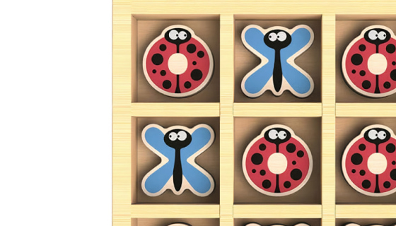 This travel-sized tic-tac-toe game will please kids and their eco-minded parents on the go. Kids will love playing tic-tac-toe with ladybugs versus dragonflies. Made from rubberwood with child-safe stains, this game set teaches problem solving and fair play.